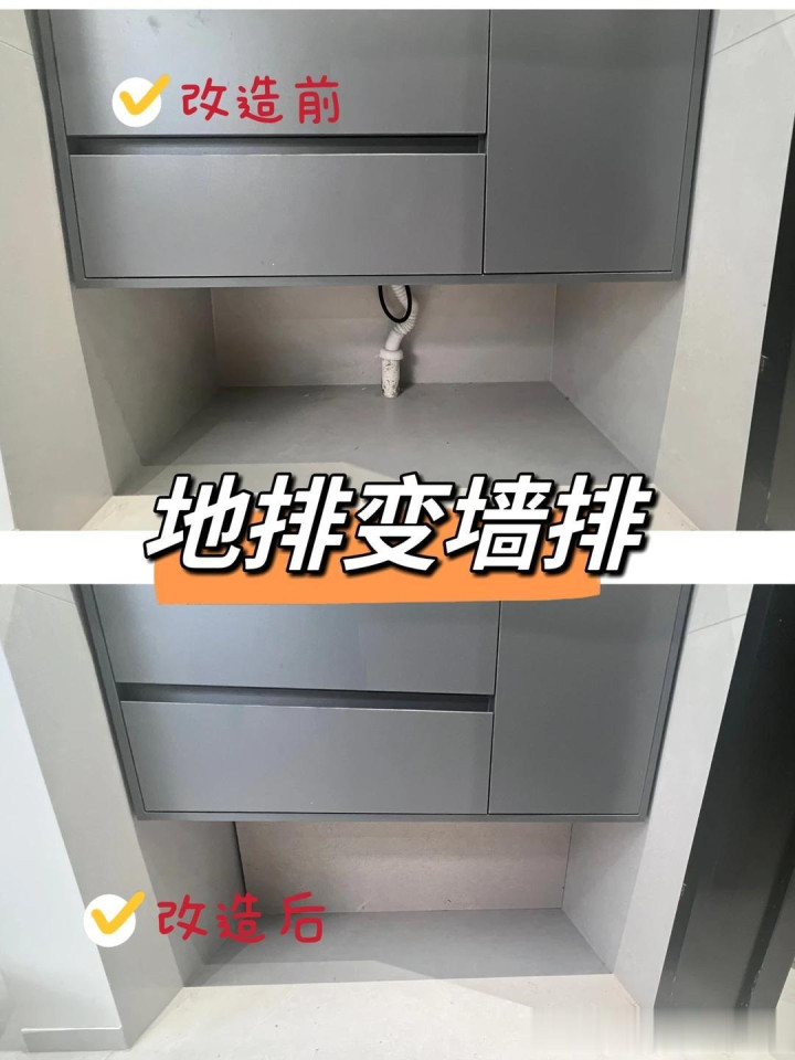 卫生间洗手池的排水一定要选择墙排,千万不要觉得麻烦,也不要觉得费事,强排能避免你入住之后打扫卫生时的麻烦,同时也能减少脏污的积攒。